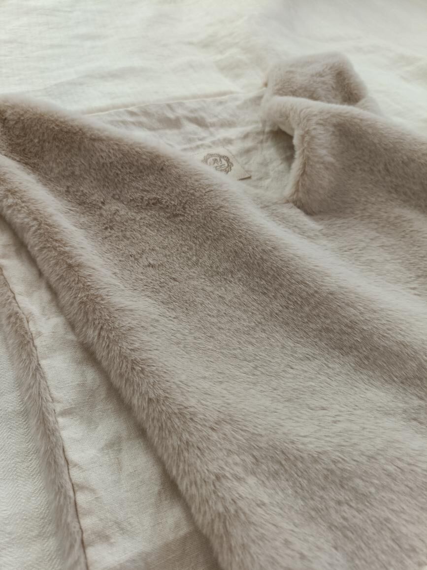 ふわふわショートベストは、手触りのいいふんわりとしたファーが魅力的。見た目も着ていても、優しい暖かさにつつまれます。裏地にはリネン生地を使用していて丈夫です。リネンは脱ぎ着の際のパチパチっとする静電気を防いでくれます。